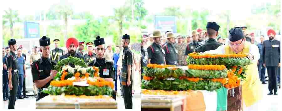 देहरादून: डोडा, जम्मू कश्मीर में आतंकवादियों से मुठभेड़ के दौरान शहीद हुए 48 राष्ट्रीय राइफल के कैप्टन दीपक सिंह का पार्थिव शरीर गुरुवार को जौलीग्रांट एयरपोर्ट देहरादून पहुंचा, जहां राज्यपाल लेफ्टिनेंट जनरल गुरमीत सिंह (से नि) एवं मुख्यमंत्री पुष्कर सिंह धामी ने उनके पार्थिव शरीर पर पुष्प चक्र अर्पित किए। उन्होंने ईश्वर से पुण्यात्मा को अपने श्रीचरणों में स्थान एवं शोकाकुल परिजनों को दुःख सहने की शक्ति प्रदान करने की कामना की।